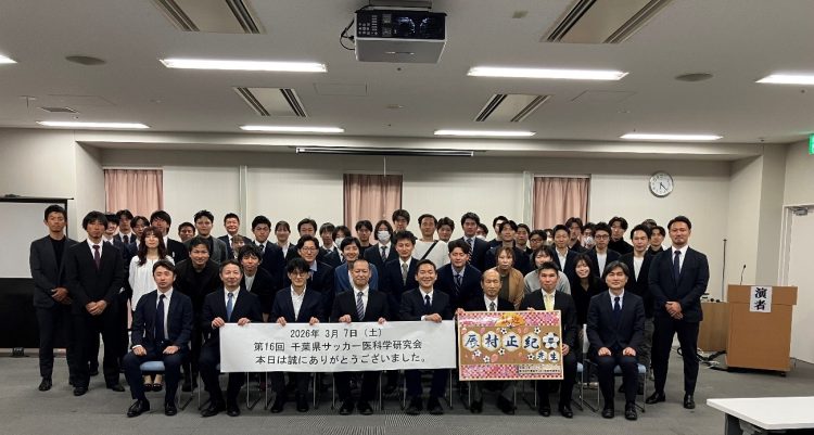 2026年3月7日、千葉メディカルセンターにおいて「第16回千葉県サッカー医科学研究会」が開催されました。本研究会は、サッカーに関わる医科学的知見の共有を目的としており、ドクターをはじめトレーナーなど、サッカー現場で活動するメディカルスタッフを主な対象としています。今回の参加者は58名(うち医師16名)でした。